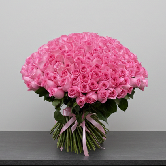 Express your deepest emotions with this breathtaking bouquet of 101 premium pink roses. Standing at an impressive , each bloom is hand-selected for its vibrant color and velvet texture. Wrapped in elegant, high-quality white paper, this grand arrangement symbolizes grace and endless love. It is the ultimate statement piece for anniversaries, proposals, or unforgettable surprises.