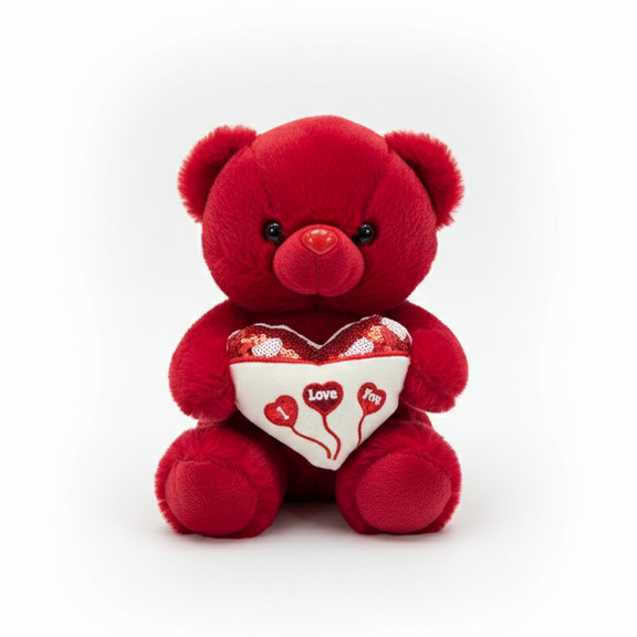 This deep crimson bear radiates warmth, clutching a white heart embroidered with "I Love You" balloons. Its plush, velvet-like texture and shimmering sequined heart detail make it a literal messenger of affection. With gentle dark eyes and a soft red nose, itβs a soulful companion designed to represent a heartfelt bond that lasts forever.